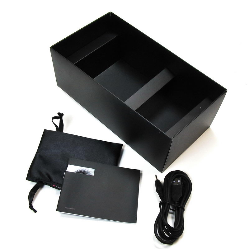 BSwih patří mezi pomůcky, které jsou baleny sice levně, ale působivě krásně – tedy patří mezi dárky, které jsou líbivé a osloví hned při rozbalování. Matně černá papírová krabice působí exkluzivně, pouze je třeba hlídat povrch, protože je velmi náchylný na poškození nebo mastnosty. Po otevření se projeví další výborný nápad – běžný blistr je proložen černým lesklým papírem, což vyvolává efekt černého odlesku. Takže levné materiály – dokonale zkombinované – vytvářejí dojem krásy a luxusu. Ve spodní části jsou dva oddíly, obsahující návod, nabíjecí USB kabel a saténový sáček pro uskladnění.