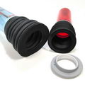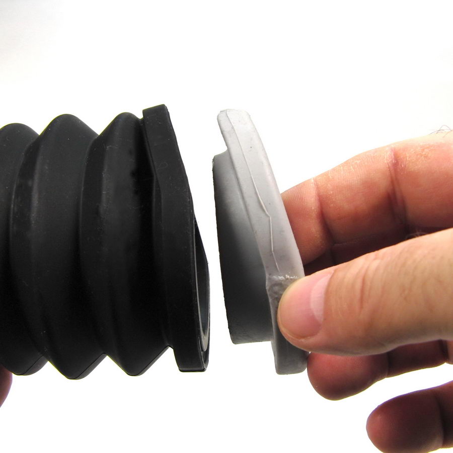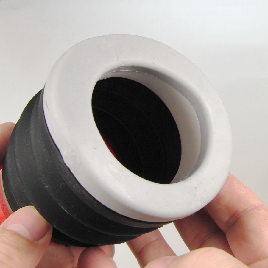 Přibyl šedý kroužek na manžetě. Možná se to zdá jako prkotinka, ale má velice důležitou funkci. Mě samotnému se stalo, že při testu Bathmate Goliath jsem manžetu nasadil horní vnitřní hranou na kořen penisu a tím, že má dost velký vstupní otvor mi to vtahovalo i šourek – což bylo dost bolestivé. Navíc vrstvička neoprénu na dosedové ploše trošku dřela a nebylo to úplně pohodlné v tříslech. Nový vložený kroužek je z mírně měkčího materiálu (Soft Superflex Elastomer) než je samotný vlnovec a je nesporně pohodlnější. Má ovšem v sobě další inovaci a tou je tvrdý váleček uvnitř nového kroužku. Myslím, že je to novodur, nebo má alespoň podobné vlastnosti. Zmenšuje vnitřní průměr, což je výhodné pro tah penisu ven = je vytahován z menší základny a tím by se účinky mohly zvýšit. Plastový váleček nevychází z kroužku ven u kořene penisu, ale je krytý tou měkkou šedou gumou. Poslední jeho dobrou vlastností je znemožnění vtažení šourku a varlat.