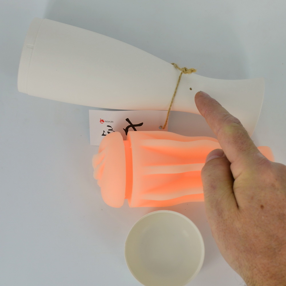 Použití je jednoduché, vzhled nenápadný, vibrace pro mě zbytečné. Jako uživatel Fleshlight mohu sdělit, že není tak pohodlná a příjemná jako FL, ale vrchol přišel dříve než s FL. Bohužel to neumím vysvětlit proč. Vyčištění je stejné. Také se dá obrátit naruby a také se musí pudrovat. Na nočním stolku vypadá jako velmi elegantní dekorace. Vibrace se nevypnuly ani po hodině. Jak psal Milan – v bílé láhvi by se dala použít ta dutina pod špuntem na lubrikant, ale musel by se tam dát gumový špunt, protože ten korkový nebude těsnit.