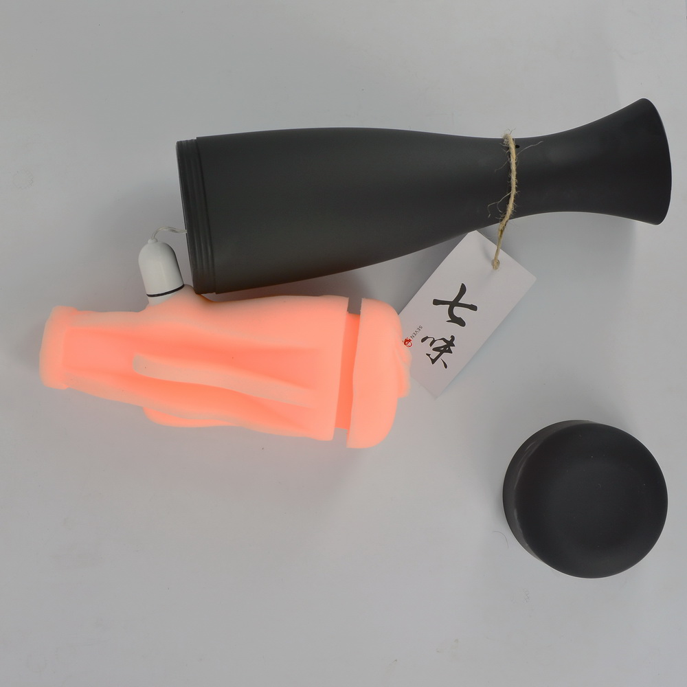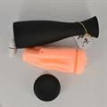 Je vibrační umělá vagína. Principiálně je velice podobná té bílé, ale vložka obsahuje dutinu, do které se zasune vibrační vložka. Tento vibro-motůrek je pevně spojen kobelem s černou lahvinkou, ve které je akumulátor a ovládání. Kabel není nijak dlouhý, takže při vyndavání vložky je potřeba dbát dost velké opatrnosti = povysunout jí ven, vytáhnout z vložky vibrátor a pak teprve jí úplně vyndat. Při opačné činnosti se musí vibrátorek zasunout do dutiny úplně celý – na fotce je zasunutý jen napůl. Vibrace jsou jemné a rychlé.