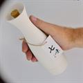 Vytáhnul jsem tu bílou a hned jsem skočil po korkovém špuntu, protože jsem měl dojem, že mě čeká nějaký olejíček. Fakt jsem netušil o co jde a všudypřítomné japonské nápisy mi toho opravdu moc neosvětlily. Pod špuntem je sice dutina, ale v podstatě budižkničemná. Možná by ovšem do ní šel nalejt nějaký ten lubrikant. Z druhé strany je víčko a pod ním prostě malinká pička. Omlouvám se za pro mně neobvyklý vulgarismus, ale prostě je to tak – je to tak nějak malinko úchylné právě tou svojí velikostí.