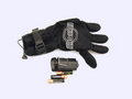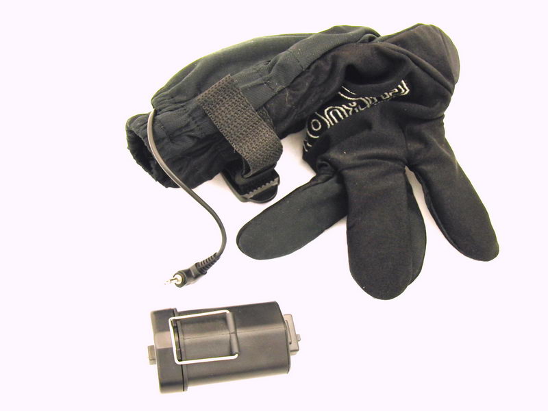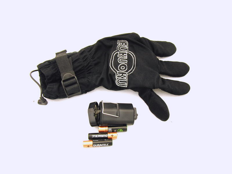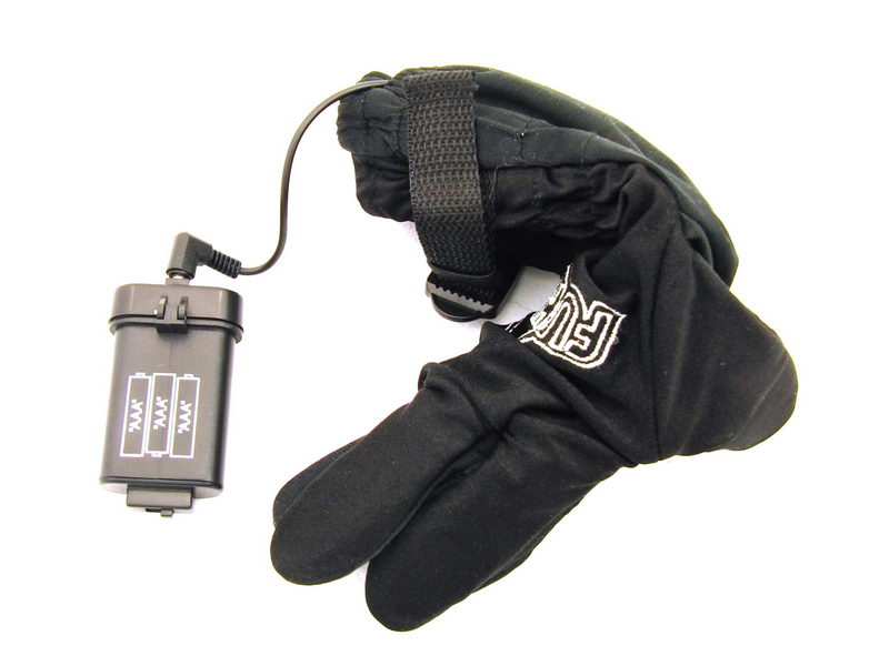 Zespodu zápěstí je pak v kapsičce na gumičku malý baterybox na 3 mikrotužkovky (na fotce jsou rukavice po akci, páč jsem je zapomněl vyfotit po vybalení ). Výrobce se holedbá vodotěsností, ale stůjme na zemi. Ovládá se to běžným třípolohovým přepínačem na bateryboxu, který rozhodně nepatří pod vodu a navíc z baterek vede běžný konektor. Takže vážení – o vodotěsnosti bych značně polemizoval. Možná by se prsty daly ponořit, ale ty vibrátorky jsem ven nepáral a netuším, jak jsou vlastně připojené a do jaké míry voděodolné.