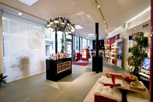 Mapa světa názorně ukazuje, kde všude již Fun Factory působí a na dalších fotografiích je možno posoudit úroveň jejich prodejen