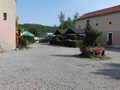 Hlavní dvůr je velmi hezký a upravený prostor, budova na levé straně je v podstatě ubytovací zařízení = penzion