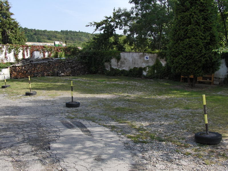 Vyloženě útulně vypadá zakoutí, které je určeno pro DogPlay a Agility. Překážky, prolejzačky apod. budou rozhodně pro pejskaře krásné povyražení a absolutní soukromí zaručuje i vysoká zeď vlevo, která zleva spadá do hluboké strže hustě porostlé křovím