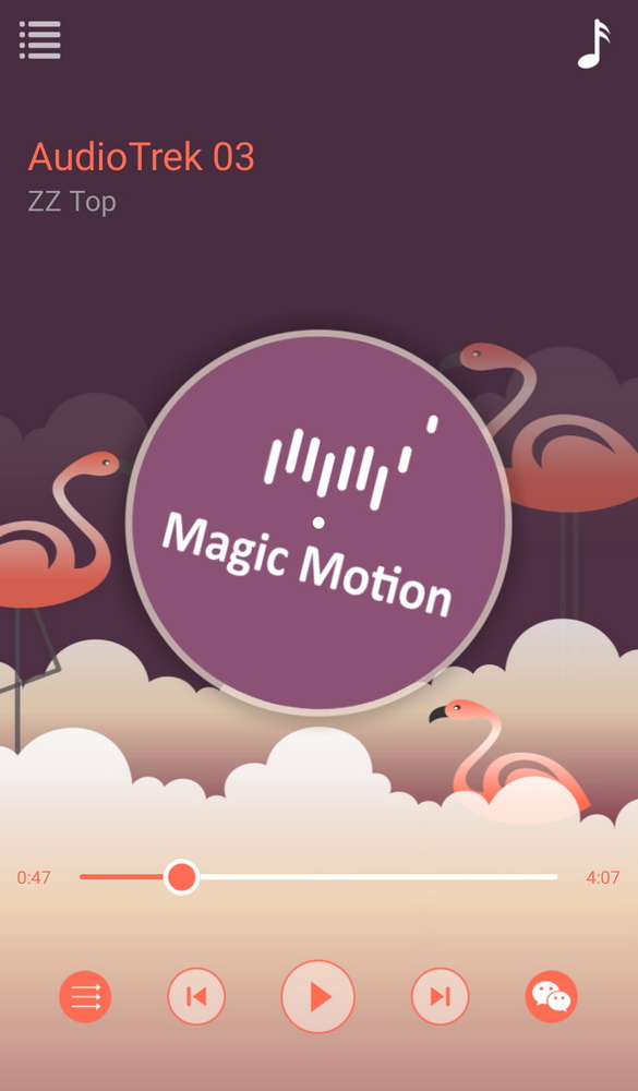 Máte-li v mobilu nahrané písničky, pak stačí pomocí Flamingo playeru hudbu spustit a zvolit intenzitu vibrací. Flamingo ale reaguje na všechny zvuky i kmitočty = chce to něco rockovějšího s pauzama. Pokud má hudba trvalý podkres, tak jsou i vibrace trvalé. Možná by to pomohlo slečnám, které mají potíže s rytmem při tanci 🙂