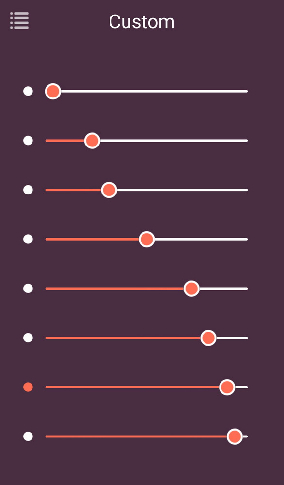 Asi není nutné nějak popisovat jaké to má funkce. Prostě bodnete prst na kružnici a přesunete tečku na jinou intenzitu. Trochu mě zamrzelo, že u tak dokonalé apky nemají vyřešeno jednodušší dosažení 100%. Chvilku to trvá a většinou skončíte na 98 nebo 99%. Na vibracích se to nepozná, ale obsedanťáci jako já, který nesnášej zbytek staniolu na margarínu (nebo pod víčkem Nescafe) se s tím vztekají dokud tu stovku neudělají.