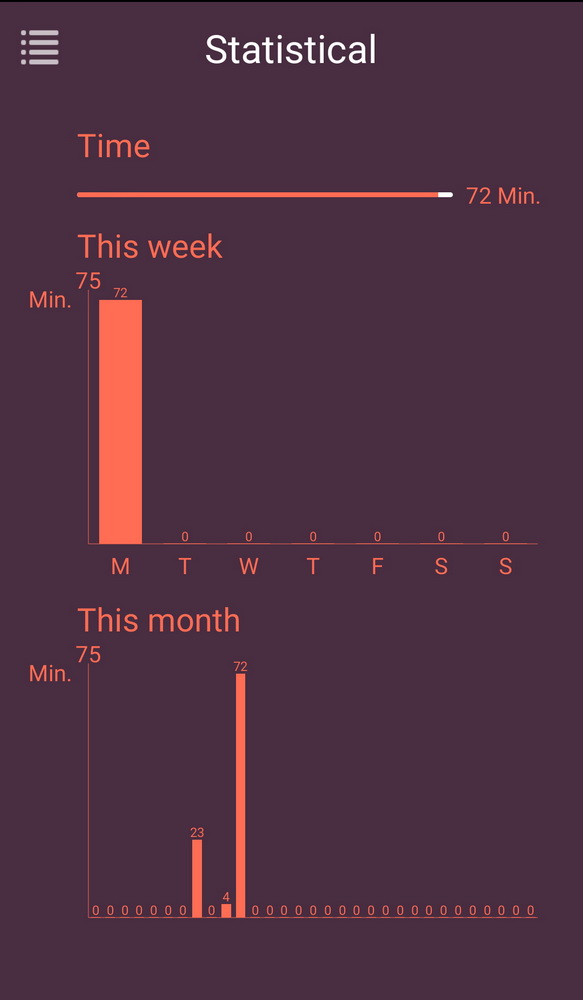 Pro dokonalou kontrolu Vaší sexuální aktivity je tu přehledná statistika, která zobrazuje kolikrát bylo Falmingo použito v měsíci a posledním týdnu a kolik jste celkem “natočili” hodin provozu. To je taková ptákovina (přesněji píčovinka), která je spíš doplněním všech možnosti.
