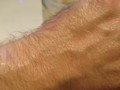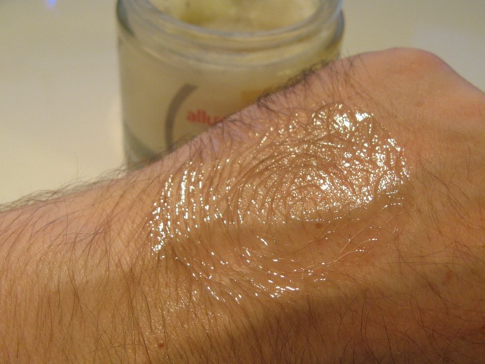 Nabírám trochu té ztuhliny na prst a roztírám na hřbet ruky. Ihned to taje se zbytky světlých hrudek a krásně se to roztírá. Z malinkého kousíčku jsem pokryl celou druhou ruku a všiml jsem si, že