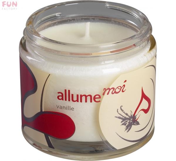Svíčka existuje prý ve třech verzích – Vanilka, Afrodisiakum a Středomoří. Nevím proč mi vybrali zrovna Afrodisiakum, ale udělali dobře. Nedovedu si totiž představit, že ty ostatní by mohly být ještě lepší. Lidi od FunFactory uměj nejen design pomůcek, ale i obalů. Takže krabička zajímavá a hezká, že bych jí jako dárek snad ani nebalil do dalšího papíru. Tyhle jejich krabičky mají jen jednu vadu – často mají tak převratné koncepce blížící se k origami, že některé krabičky už po rozložení sami prostě nesložíte. Svíčka Allume Moi má naštěstí krabičku téměř klasicko