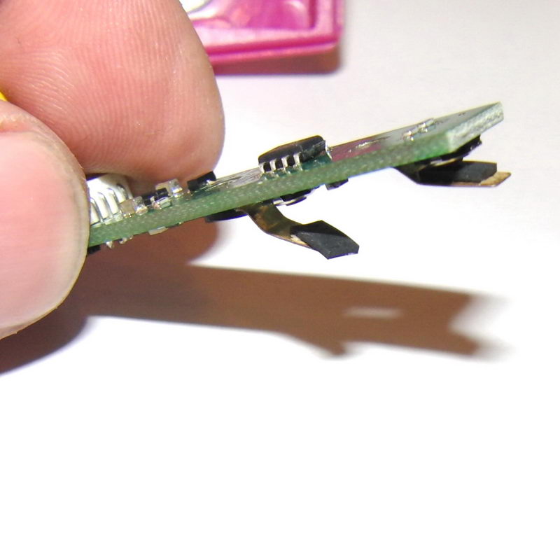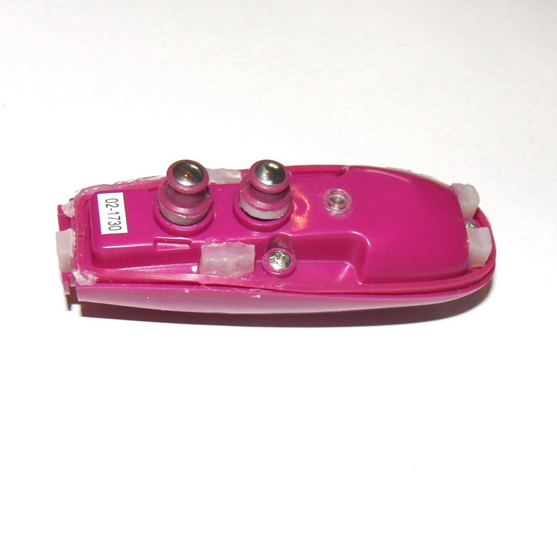Ploché kontakty současně slouží k nabíjení (na tlačítka se přiloží magnetický třmen a přes ně se vede proud do plochých kontaktů. Vymačkáním do hloubky se kontakt ohnul, a proto jsem musel nabíjecí třmen přitlačovat gumičkami zvenku. Takže je nutno kontakty trochu napružit, aby byly výše a hlavně dobře umístit gumové vložky a pevně je přilepit.