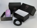 Obal napovídá příbuznost se špičkovými výrobky Lelo. Dřevěná krabička potažená matným černým papírem je fixována stuhou a skládá se ze třech dílů. Po odkrytí prvního dílu se objeví samotné miminko v silikonovém lůžku. Je zajímavé, že vibrátor dokonale drží na svém místě i když se zavřená krabička obrací. Po zdvihnutí středního dílu se odkryje prostor pro návod v bambilionu jazycích, záruční list, saténový sáček na provozní přepravu a nabíječka. Inteligence vývojářů přidala k nabíječce redukce na nejrozšířenější normy zásuvek po celém světě. Čistota zpracování a skvělé řešení už napovídá, že máte v ruce hodně dokonalou věcičku.