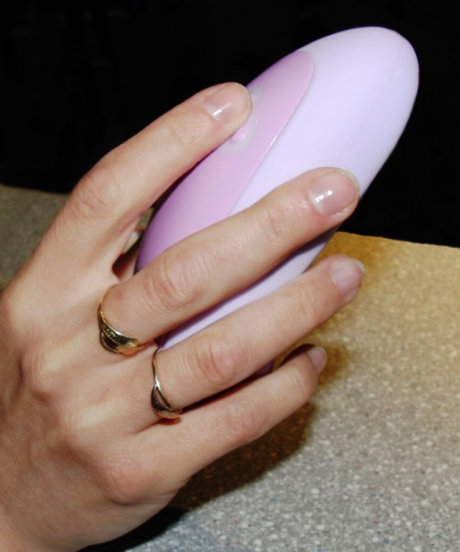Dámy z mého testovacího teamu už stály natěšenou frontu, protože tahle potvůrka je prezentována především jako velmi dokonalá náhrada orálního sexu nebo úžasně šikovný prstík. Ve spojení s vibracemi se to stává velice zajímavou hračkou a zvědavost se tím zatraceně umocnila. První byla samozřejmě Testinka. I když jsem jí udělal přednášku o ovládání, musela se zpočátku ještě ptát. Teprve po pár minutách to plně pochopila a vrhla se na růžovou lodičku jak hladová šelma. Sasi má dva systémy pohybů – první umožňuje procházet všechny druhy pohybů – kterých je v základu 11, ale v dalších kolech se některé vzdálenosti zkracují – takže jich je celkem mnohem víc. Pokud se nelíbí, stikne se tlačítko znovu a přejde se k dalšímu. Také je možno se opačným tlačítkem vrátit k předešlému pohybu. Po 20sec se pohyby mění samy. Pokud je pohyb fajnový, stiskne se paměťové tlačítko a tím se tento pohyb uloží do paměti. Při dalším zapnutí je pak možno volbou tlačítka “Oblíbené” vyvolávat již pouze ty pohyby, které si holky mašinku předem naučí. Do toho všeho se dají zapnout bežné vibrace v 3 intenzitách a dále ve třech vibračních programech. Ty jsou důležité pro snížení vibrační rezistence, která nastává často u monotónních vibrací.