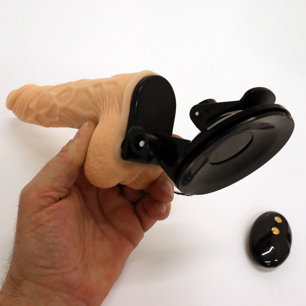 Hračka, která zaujala na první pohled. Ultra realistický tvar – mírně zašpičatělý – ukazuje, že by se dalo i pro análek. Rozměry slušné, materiál příjemný, perfektní kloub se skákačkou po stupních a možností opravdu pevně zaaretovat. Zabudovaný akumulátor, nabíjení USB, dálkové ovládání a opravdu dobrá přísavka. Takové věci testinky uvítají, takže jedem podle zaběhnuté šablony: