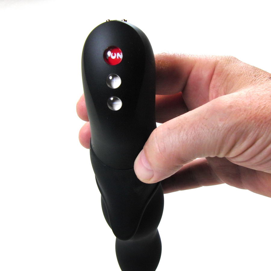 Stiskem (FUN) se spustí základní program a tady je další zajímavost. Tento typ úvodního programu je někde uprostřed a přepínání na obě strany vede k rozdílným efektům. Stiskem (-) je možno navolit 3 zpomalující programy, které jsou velmi relaxační a jemné. Poslední se již chová jen jako když má muž poorgastické jemné cukání (“přímrdy”). Jeden prudký náraz vnitřního závaží přibližně za sekundu. Od středu nahoru = mačkáním tlačítka (+) se volí 3 intenzity přírazů.