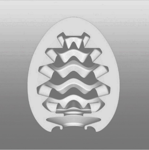 Každé vajíčko má na celém obalu nějakou grafiku. Dobře si jí prohlédněte, protože to, co je natištěno na pečetním obalu je vlastně drážkování a výstupky uvnitř vajíčka, které vytváří slušně realistický pocit jako uvnitř vagíny. Obal nevyhazujte a vezměte si ho s sebou na příští nákup – sortiment je veliký a málokdo si pamatuje co mu přesně ideálně vyhovovalo. Vajíčko jsem obrátil naruby, aby bylo jasné, co Vás čeká…