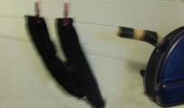Pár dní před akcí jsem se rozhodl detailně prozkoumat obsah celé bedny. Zabaleno to je asi jako nový DVD recorder – perfektní polystyrénová forma a v bílých pelíšcích uloženy všechny drobnosti i hlavní stroj. Mašinka samotná není nijak veliká a co mě překvapilo – ani těžká. Ke strojovně je pevně připojen napájecí kabel do sítě i dálkové ovládání… Vcelku chápu, že všechny konektory a zdířky jsou zdrojem poruch, ale ty kabely mě rozčilovaly, protože se u stroje motaj a už je nikdy nikdo nedokáže zase smotat stejným způsobem pro zpětné uložení do bedny. Mašinka není ani moc těžká a to bylo první co mě napadlo – že její stabilita nebude nic moc a že bude ujíždět. Jenže vespodu má protiskluzovou gumu a navíc tzv. klíčové dírky = uchycení na 4 šrouby. Trochu luxus je vytahovací ucho jako u kufru, které se vytáhne asi o 10cm a za které se to výborně přenáší. Na boku stroje jsou z každé strany velké křídlové plastové matky. Když se povolí – tak je možno naklánět směr šukajícího dilda plynule z vodorovné polohy do úplně kolmé. To je myslím vůbec největší výhra tohoto výrobku. Drtivá většina mašinek se musí různě štelovat a podkládat – aby úhel průniku odpovídal potřebám ošukávané. U téhle je to věc absolutně jednoduchého nastavení a navíc ani není nutné to utahovat – úhel se pak mění sám podle potřeby. Drobným nedostatkem je německý popis u křídlovek a to, že při úplném povolení na doraz dojde k opětovné fixaci úhlu dilda = pořádně nevíte, jestli je to úplně utažené nebo úplně povolené. Každopádně jsem vycházel ze správného předpokladu, že doleva se to povoluje a doprava utahuje a nesmí se to povolit až nadoraz doleva, ale jen tak, aby s tím šlo hýbat.