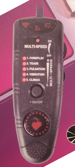 Kabelová dálka má po straně dvě kolečka – horním regulátorem se ovládá rychlost šuku a spodním kolečkem se ovládají rychlosti vibrací. Nutno podotknout, že je možno do mašinky zapojit všechny tři doplňky současně a dálkové ovládání si s nimi poradí. Na ovladači je ještě tlačítko, kterým je možno přepínat 5 různých vibračních programů pro připojené vibrátory. Už jen taková výbava vcelku ohromí svými možnostmi i přemírou kombinací.