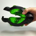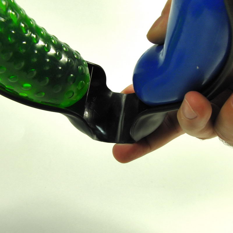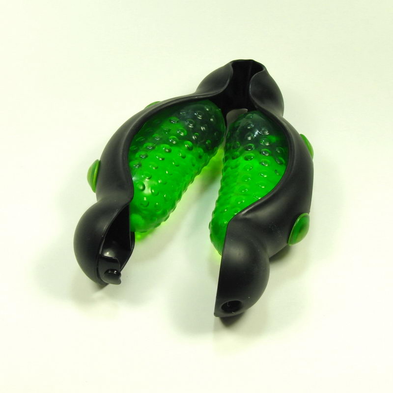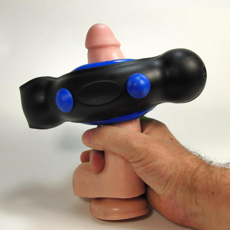 První věc, která mě uspokojila – vložky se dají z rámu vcelku lehce vyjmout a nasadit zpět. Výměna za jiné je otázkou cca minuty. Chce to krapet grif – zespodu si vymáčknout okraj toho kroužku a pak ho zvenku zachytit a vytáhnout jej přes otvor ven. OK – tohle funguje dobře. Ale co je na ještě větší pochvalu – je možnost kombinace dvou různých dezénů. Tak že v jedné polovině může být hladký a na druhé straně s drážkami nebo nopky. To oceníte tehdy, když začnete zespodu penisu s hladkou vložkou a před orgasmem to celé otočíte. Fakt dobrej nápad.