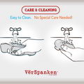 A už jsme u hlavního bodu, který je prostě mňamózní. Když si VerSpanken vezme do rukou partnerka, tak s ním může pohybovat a současně používat i její ústa. Prostě chvíli s ním řádí na kraji a pak jej přesune na střed penisu nebo ke kořeni a dělá orálek. A vrcholek je také zajištěn! – Při masturbaci je třeba myslet na ejakulát, kterému vepředu nic nebrání zasáhnout třeba klávesnici na porno-notebooku. Ale sličná slečna si s tím poradí dokonale a některé dámy také uvítají, že VerSpanken zabrání příliš hlubokému průniku penisu do krku. Co je ovšem další parádička je to, že sliny z úst postačí k lubrikaci, takže ve spojení s orálním sexem není třeba lubrikant používat.