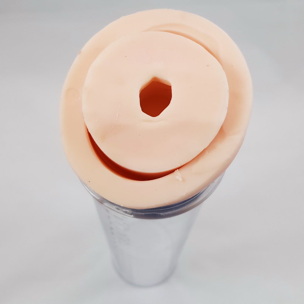 - Následné nafouknutí a sejmutí válce je v podstatě nemožné. Po úporné námaze sleze manžeta z válce a zůstane vám na penisu jako trychtýř