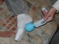 Ale zpět k vážné debatě – Vestavěný akumulátor je NiHm, opět dvoupolohový přepínač volí mezi vypnutím, polohou LOW = 4500 ot/min a HI = 6500 ot/min. Držadlo je z ABS plastu a hlavice z neuvedené měkké hmoty. Váha je pouhých 330g.