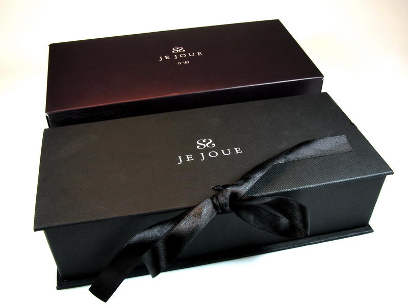 První, s čím se setkáváme u erotických pomůcek je jejich obal. Přímá úměra v luxusnosti obalu a ceny bývá současně i v relaci s jeho kvalitou. U G-Ki je ale cena určitě nižší, než by se dalo u takto vybaveného vibrátoru očekávat. Vnější ochranný obal je z matného, temně fialovohnědého papíru a v něm je ukryta pevná schránka, polepená vymačkávaným černým materiálem, připomínajícím textil. Po rozvázání romantické mašle uvidíte samotný vibrátor v plastovém výlisku, který kryje nabíječku a návody.