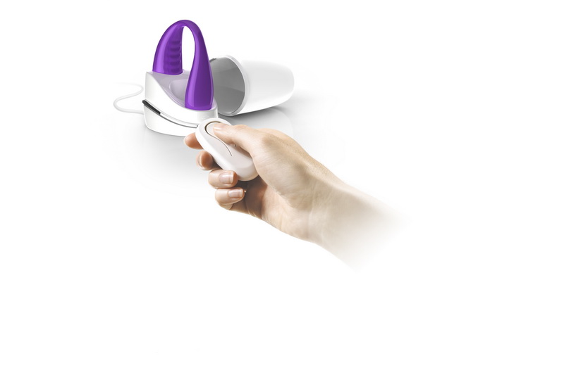We-Vibe 3 to vzal razantně a použil indukční nabíjení, které řada z Vás zná z elektrických zubních kartáčků. Prostě žádný kov, žádné kontakty… Plast na plast a energie se přenáší indukcí přes izolační materiál. We-Vibe 3 jen položíte – repsektive postavíte do stojánku a už se automaticky nabíjí. Napoprvé je potřeba ho tam nechat celý den, ale každé další nabíjení postačí okolo 90 minut. A hlavně na základně je kontrolka, která jasně ukazuje, že nabíjení probíhá. Uprostřed stojánku je i místo pro odložení dálkového ovladače a je velmi pravděpodobné, že ten se nabíjí podobným způsobem.