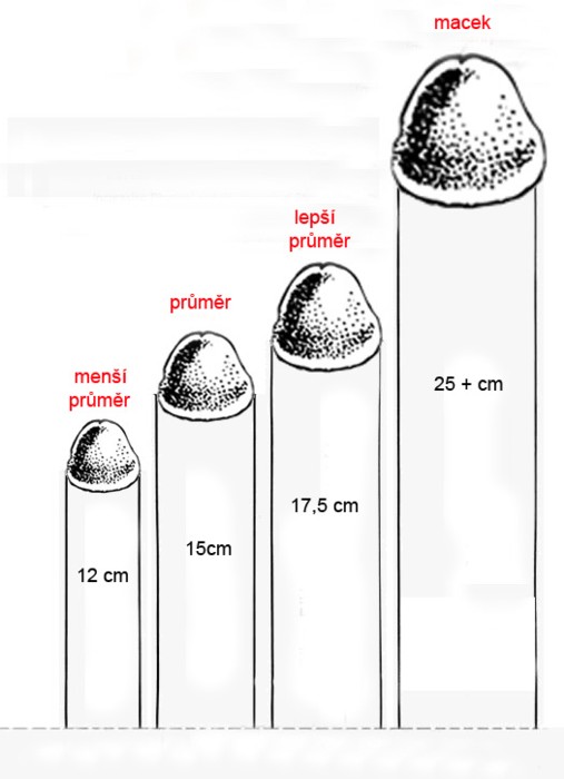 Trochu jsem zapátral o průměrné velikosti penisu v Evropě a vypadlo mi z toho číslo 12,9cm, podle Kinseyho je to 15,9cm, V Kalifornii 14,3cm, v Německu 14.4cm, ve Španělsku 13,6cm a v Čechách je to 15cm. Pak jsem navšívil pár netových diskuzí na toto téma a velmi málokdo tam měl kolegu pod 20cm. A holky se tam hádaly naprosto luxusně, kdy jedna vykřikovala, že “vocas pod 25 čísel jí ani neprobudí” a druhá kontrovala, že jí bolí i 15ti centimetr. Přečetl jsem to celé a na konci jsem si byl jist, že pokud v té diskuzi byla nějaká žena, tak možná mamka nějakýho vyděšence, která mu koukala přes rameno a všechny ty holky byly nejspíš kluci.