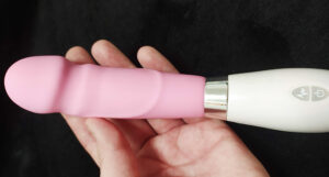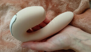 Tvarem a funkcí se tváří jako běžný rabbit vibrátor, ale není. Horní část totiž i pulzuje – přiráží. Na testování ho dostala testerka Markéta