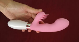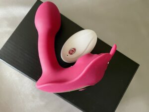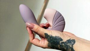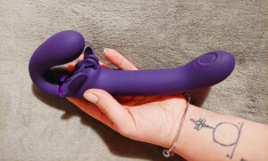 Vibrátor s podtlakem na jednom ramínku a skvělým vibrátorem na BOD G na druhém ramínku. To je Romant Harmony v rukou testerky právě teď!