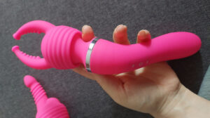 Oboustranná masážní hlavice v rukou testerky NIKY. Vyzkoušeno i na milenci!