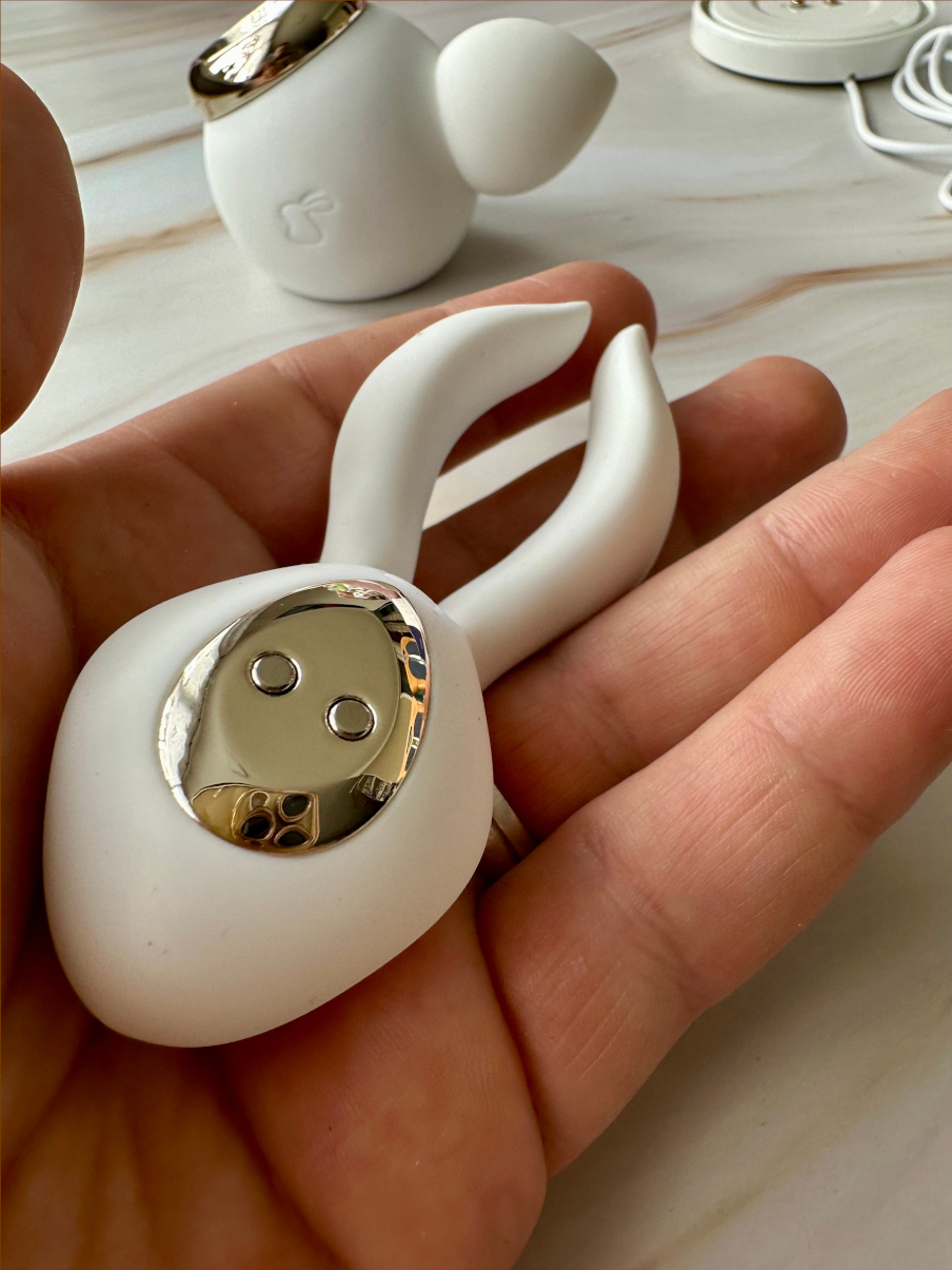Složil jsem Lumi Lapina na noční stolek a zapojil ho do zásuvky – a čekal, až si ho manželka všimne. Věděla, že nám přišly novinky, ale netušila jaké. Jakmile vešla do ložnice, hned si králíčka všimla a zeptala se, co to je. Když jsem jí řekl, že jde o podtlakový stimulátor s vibrátorem, byla překvapená – a nadšená. Stimulátory klitorisu patří k jejím nejoblíbenějším potěšítkům, takže si ho chtěla okamžitě vyzkoušet.