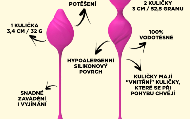 Představuji vám opět úžasný kousek řady BOOM, tentokrát se jedná o venušiny kuličky, a to v praktickém setu hned se dvěma velikostmi – model Yoyo. Dámy, zbystřete, prosím, každá z vás by měla mít venušiny kuličky ve své erotické výbavě! Proč? Jednoduše proto, že s nimi zažijete krásné chvíle vzrušení a zároveň můžete účinně posilovat svaly důležité pro zabránění inkontinence. A nenechte se mýlit, zdaleka se nejedná o problém pouze starších žen.