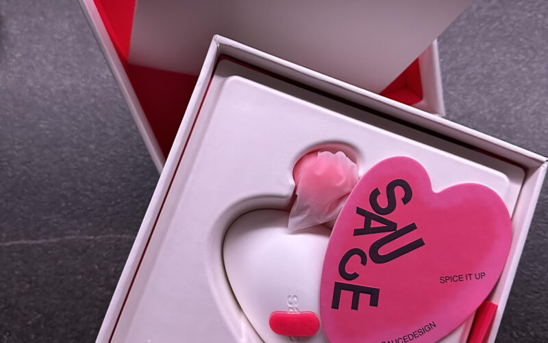 SAUCE Sweetheart vibrátor nám dorazil v krásném dárkovém balení, které udělalo příjemný první dojem. Ihned po otevření krabice jsem ucítil příjemnou, sladce ovocnou vůni, v krabičce bylo parfémované kartonové srdíčko s logem SAUCE. Za to bychom dali malé plus, protože jsme se s tím u jiných hraček nesetkali. Krabice obsahovala návod v angličtině, USB kabel, podtlakový vibrátor, silikonovou hygienickou krytku ve tvaru srdíčka na sací otvor a jemný látkový pytlík na uschování vibrátoru.