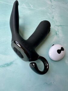Naopak pozitiv mám u BASIC X Bump vícero. Strašně se mně líbí spojení kmitání a vibrací, přináší to velmi příjemný pocit v análu. Stejně tak je perfektní i vibrující ramínko na varlata. Osobně je mám velice citlivá, takže jsem masáž varlat uvítal. Palec nahoru dávám také za sílu motorů, které jsou zároveň i celkem tiché. Co se týče dálkového ovládání, tak to funguje skvěle, navíc ho uvítají všichni, kdo budou chtít stimulátor používat bez pomoci partnerky. (Nemusíte někde u análu lovit knoflík pro změnu intenzity nebo režimu vibrací/tepání.)