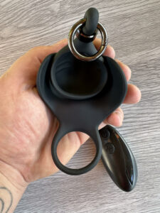Endy je zabalený v malé papírové krabičce, ve které je kromě návleku na varlata ještě magnetický dobíjecí kabel, dálkové ovládání i s baterií a návod k použití. Samotné vibrační tělo je velké zhruba 9×6 cm, ale v pohodě se do něj vejdete i s plnýma koulema. Strach nemusíte mít ani z průměrů kroužků, pokud tedy nejste africkej pornoherec.