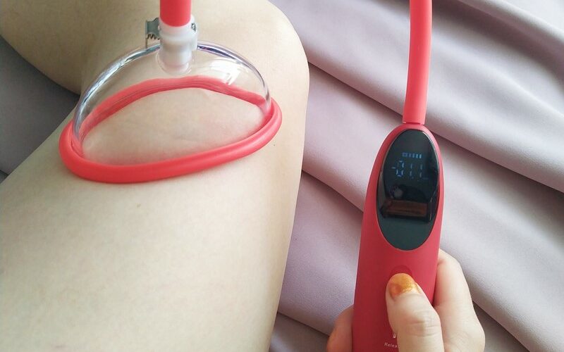 Na ovladači pumpy najdete tři tlačítka – tlačítko pro vypnutí a zapnutí, pod ním tlačítko Release pro okamžité snížení, či úplné uvolnění podtlaku a poslední tlačítko Smart, kterým zapínáte chytrý režim. Zároveň jím přepínáte mezi 6 různými módy, kdy pumpa v různých intervalech nasává vzduch a povoluje podtlak (poslední režim je pouze „dofukování“ na zvolenou hodnotu). Displej zobrazuje aktuální hodnotu (pod)tlaku v kPa, stav baterie a zda je zapnut manuální mód, nebo Smart (a jeho pořadí). Návod může zpočátku působit celkem náročně na pochopení, ale po chvíli zkoumání zjistíte, že to vlastně až tak složité není. Jen co jsem začala být v ovládání (a zkoušení podtlaku na stehně) poměrně suverénní, moje odvaha to vyzkoušet na správných partiích dosáhla bodu absolutního odhodlání.