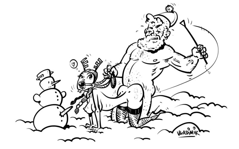 I tuto polohu budete určitě znát. Je to klasická poloha zezadu, s trochou fantazie je to ale úplná kopie sobího spřežení! Paní Santová klečí na čtyřech a Santa do ní vstupuje zezadu. Odteď už této poloze neřeknete jinak, než „na soba“.